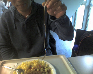 Ronaldo hatte heute eine phänomenale Erfahrung in der Mensa gemacht: Er hat ein magnetisiertes Messer erwischt. Die magnetische Wirkung war allerdings so stark, dass man damit eine Gabel hochheben konnte. Es war eine lustige Erfahrung, die auch an den Nachbartischen für Furore sorgte; alles wurde gleich sorgfältig mit den Handycameras dokumentiert. Vergesst Uri Geller, hier kommt Ronaldo!